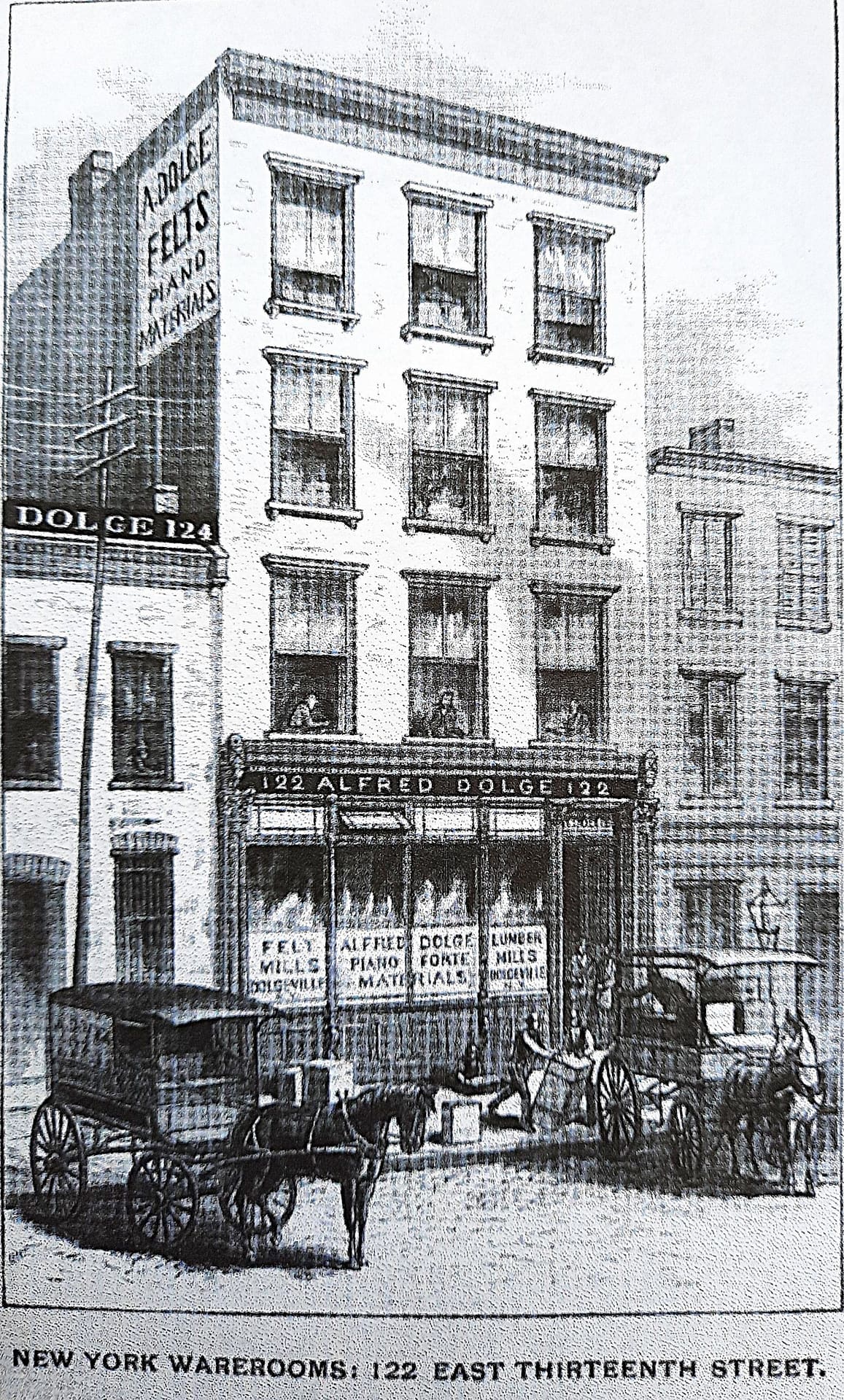 This photo is from the Steinway and Sons New York factory circa 1915–1920. It is rather unusual to find historical photographs of piano factory workers where the actual work performed can be seen clearly. Part of this is due to the long time exposures made necessary by the very slow plate and film emulsions available before 1930.