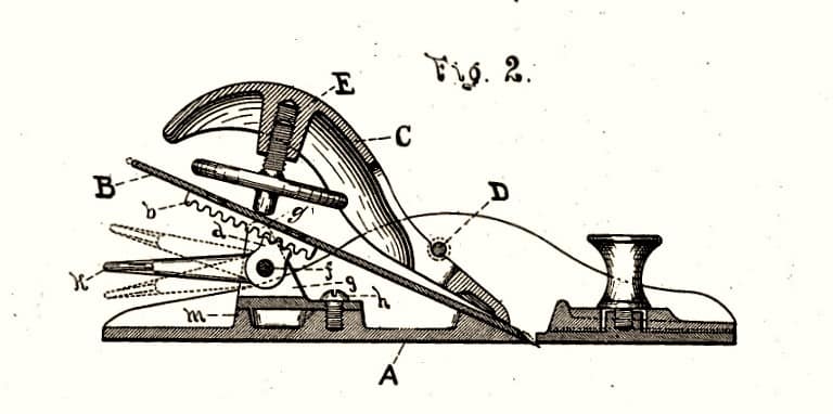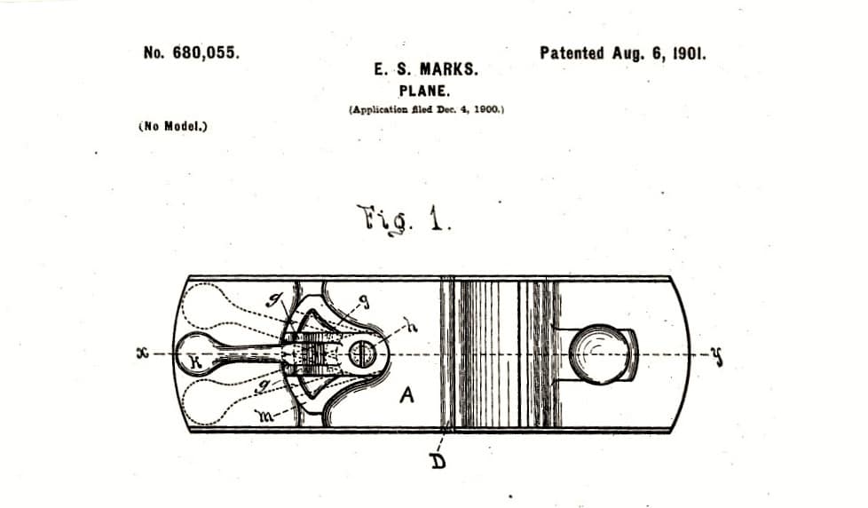 Mark’s Patent drawing Iron Adjuster in conjuction with the rack and pinion type adjuster used on the 09 1/2 type block planes, c. 1901-1905.