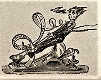 Stanley’s advertising department began showing a depiction of an Imp riding on a Stanley Excelsior (rear-biased cheeks) 9 1/2 style block plane on the covers of their pocket catalogues, in 1888. Stanley continued to show the Imp there, as well as on the back of some catalogues, through 1902. The Imp was shown riding on the block plane with bridles, as if the plane was a carriage. For the last appearance of the Imp in 1902, the block plane still showed the Excelsior style, but with the newer “handy-grip” cheeks, which were patented by Justus A. Traut in 1897, and introduced on their block planes in 1898. Excelsior style block planes with the “handy- grip” sides were only made for several months during 1898, after which, the rise in the sidewalls was moved to the center of the plane.