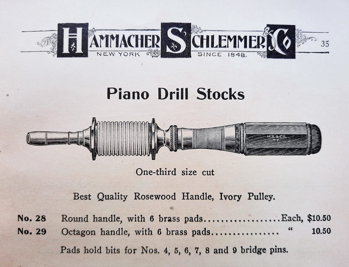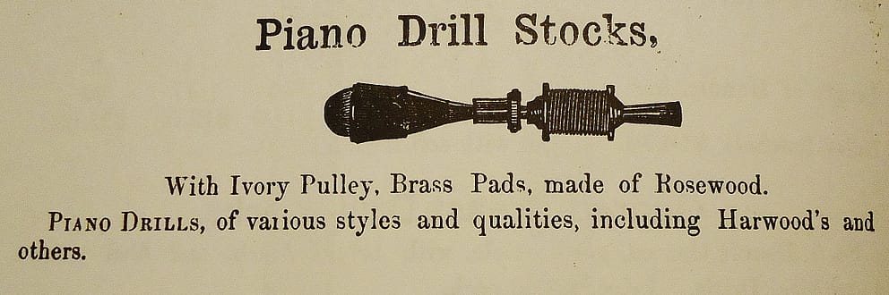 Samuel Wolfenden, a British pianomaker and author of “A Treatise on the Art of Pianoforte Construction,” (1927) wrote about the application of bow drills in piano work: