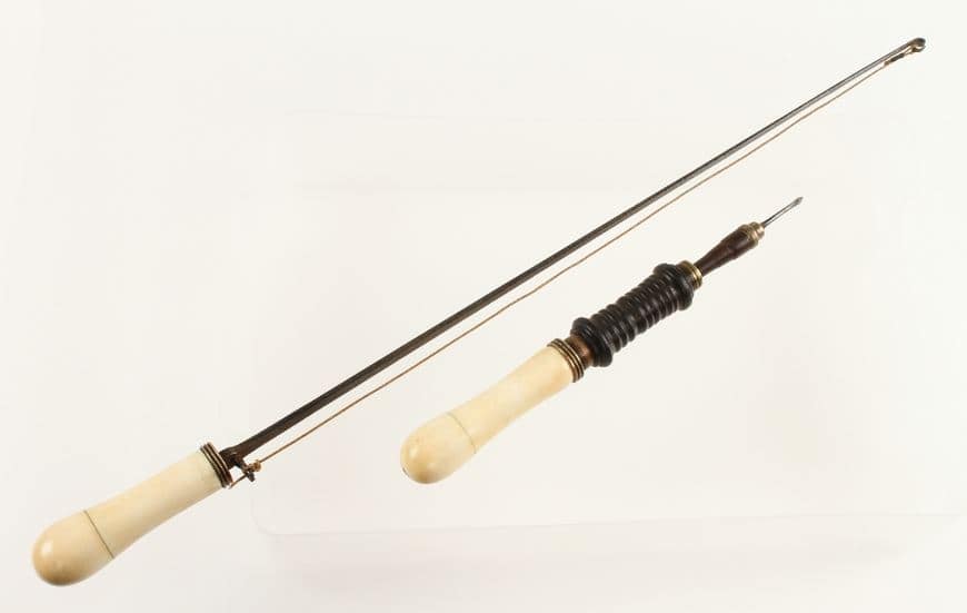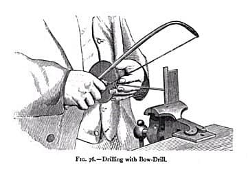 This ancient tool, which was depicted in Egyptian hieroglyphs, is almost as old as the invention of fire, as the first versions of it were used to start fires and to drill holes in stones and beads. They were driven by a bow held in the opposing hand, and were capable of producing precision work when used by skilled craftspeople. Bows were moved back and forth, in a steady reciprocal motion, somewhat like a cellist might play.