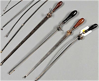 Using fencing foils to make bows was a common practice. Because many craftspeople made their own bows, and the possibility that bows could be purchased locally, they were sometimes omitted from piano supply catalogs.