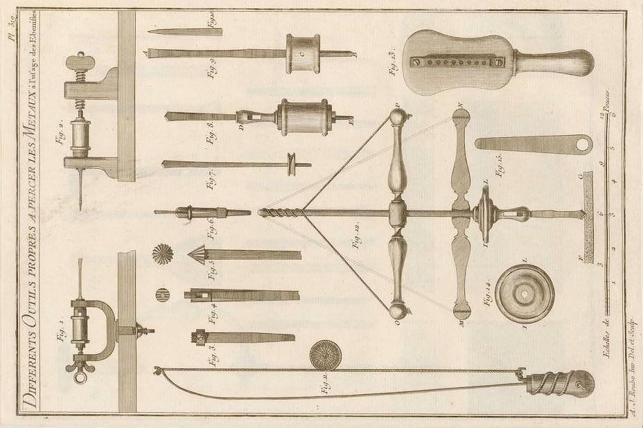 André Jacob Roubo, L’Art du Menuisier (The Art of the Joiner), 1769-1774; plate 319. Various drills.