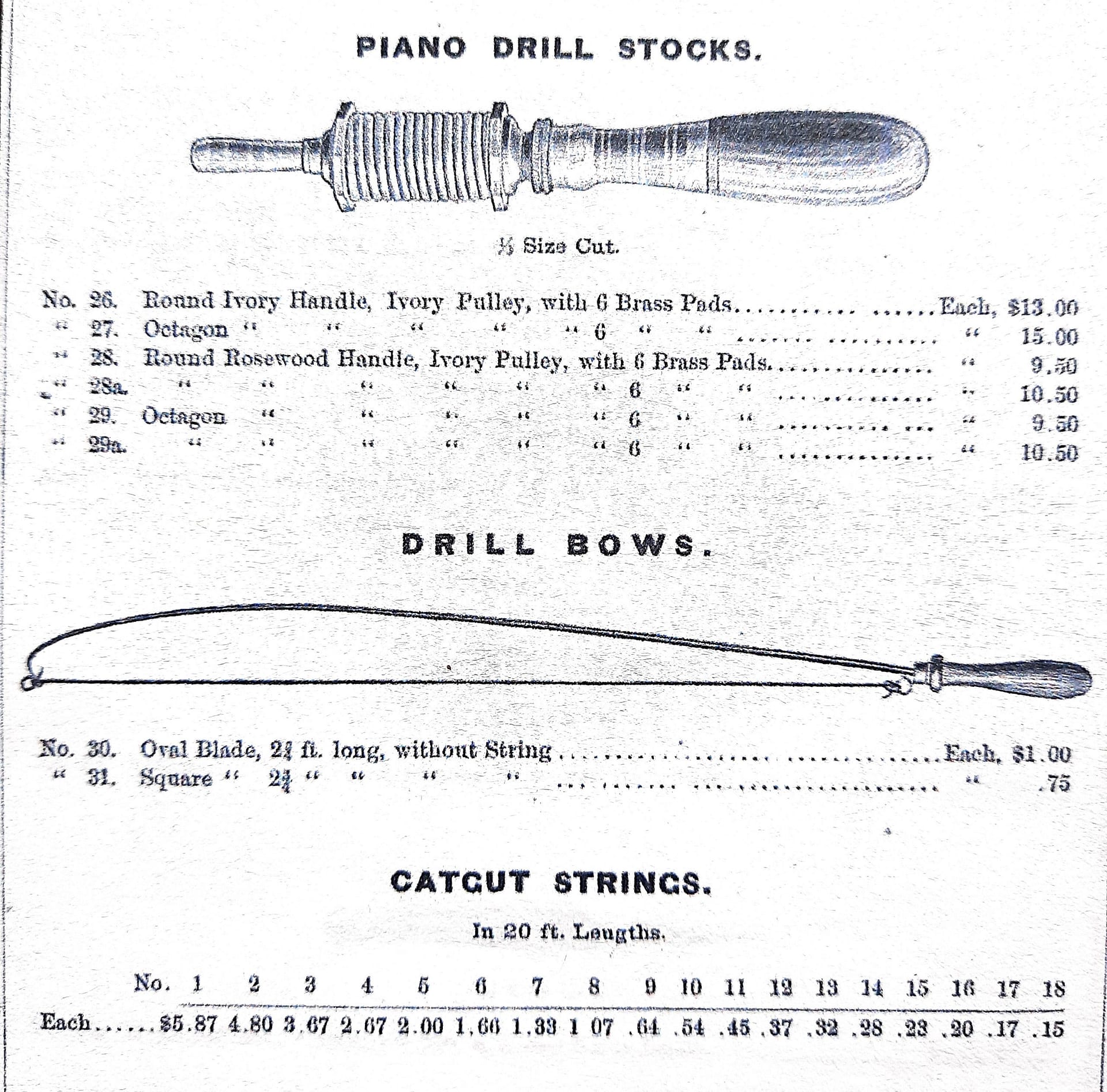 Julius Erlandsen Bow Drill Stock and Bow, as offered in the Otto Higel Piano Supplies Catalogue of 1906…
