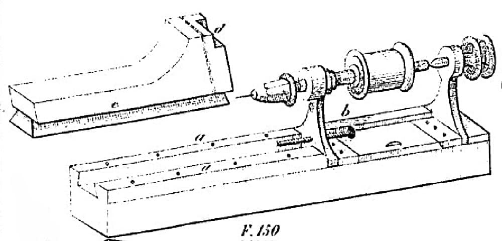 Diderot, vol. 5, Plate 10: Music Instrument Making, One and Double-Ended [treadel] Lathes Used by Makers of Wind Instruments, Flutes, Oboes, Clarinets, Etc. circa 1767.