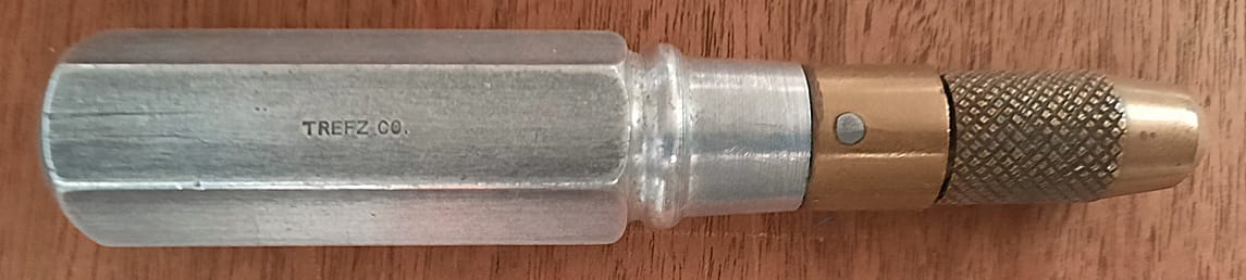 Another collet and compression nut type, found with a pre-WWI toolkit comprising of Erlandsen, H.S., and A. F. tools. These also accept the modern or standard arrangement. I’m not sure who sold these, perhaps American Felt Co. by process of elimination. H.S. offered combination handles that accommodated the traditional tang.