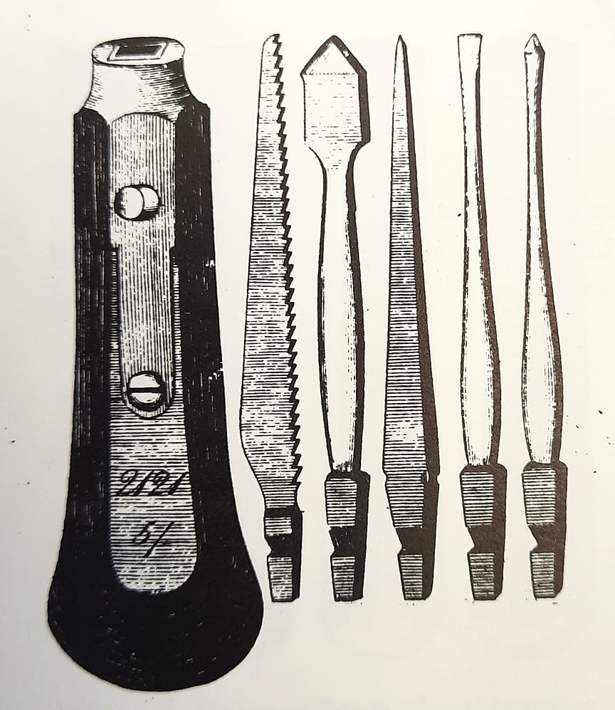 Drawing of the Pad Handle and tools, from the Richard Timmins of Birmingham, England Catalogue of 1845………..
