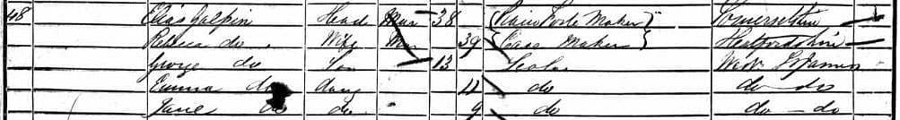 Elias Galpin, 1851 U.K. census.Elias Galpin, “Pianoforte Maker; Case Maker,” in the 1851 U.K. census. 11 Great Pulteney Street, Covent Garden.