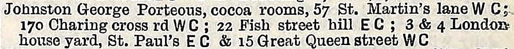 George Porteous Cocoa Rooms were part of the Temperance Movement in London during the late 19th, early 20th centuries.