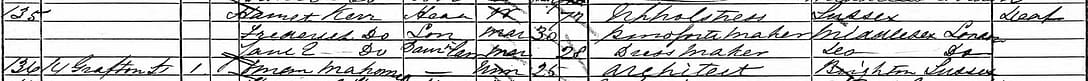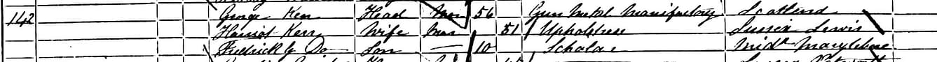Harriet and Frederick Kerr, 13 Grafton St., in the 1881 U.K. Census. After the death of George Kerr, Frederick George and Harriet remained at 13 Grafton St. until at least 1881