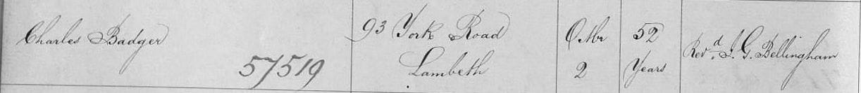 Charles Badger was still at 1 Stangate St. during the information collecting fro the 1867 London Trade Directory.