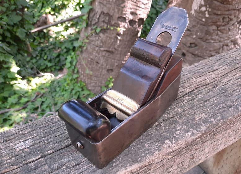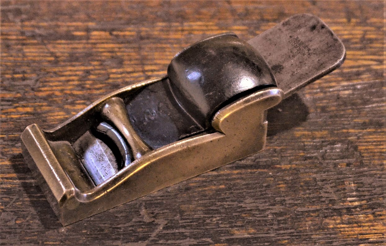 Cox adjustable mouth mitre plane, to view. The peined part of the lever cap screw has a delicate copper wash.