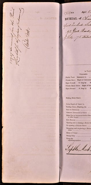 Grace Kerr, age 29, was buried on 13 January, 1831. Saint Pancras Parish Chapel. Grace and George lived on Francis Street in 1831. Upon his death, George Kerr would also be buried at the Saint Pancras Chapel cemetery in Camden.