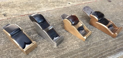 Four Kerr infill planes, rebate, two smoothers, and a shoulder plane. From collection of George Anderson, photo June 2017.