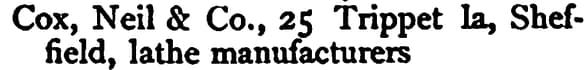 Cox and Neil, in “The international guide to British and foreign merchants and manufacturers,” Published by Ingoldby and Lamb, London, 1872.