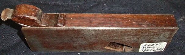 This mitre rebate plane was likely made by Charles Badger as well. Rosewood wedge was slotted to fit lugs on the sides.