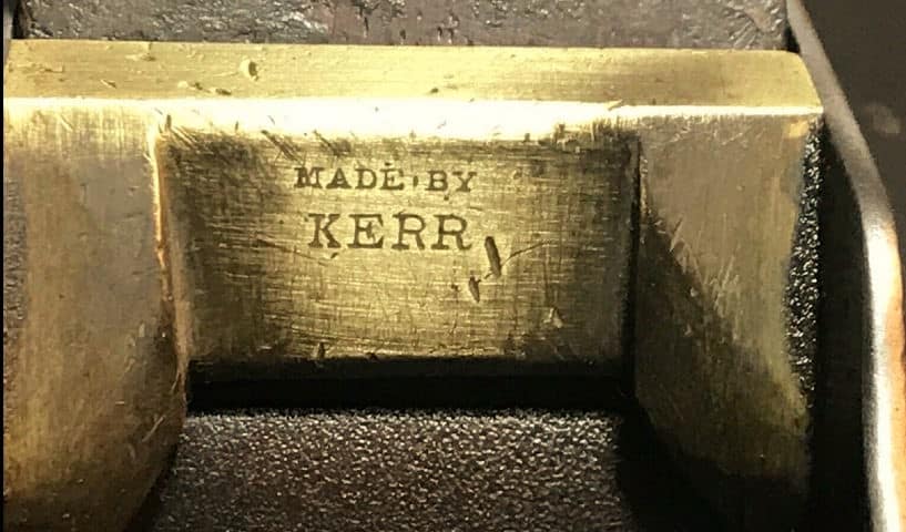 Since Kerr’s planes were stamped without his first initial, not even that was known, which posed an obstacle to research. In 2015, one James Kerr was floated as the possible planemaker. In Goodman’s British Planemakers, 3rd edition, 1993, only four Kerr metal planes had been reported. Russell’s collection of Kerr planes included a dovetailed panel plane, a smooth plane, a rebate plane, and two thumb planes.