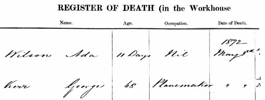 Death of Harriet Bulbeck Kerr, at the Saint John’s Road Workhouse in Islington, 19 November, 1893. Then, on 19 November, 1893, Harriet Kerr died in the Saint John’s Road Workhouse in Islington.