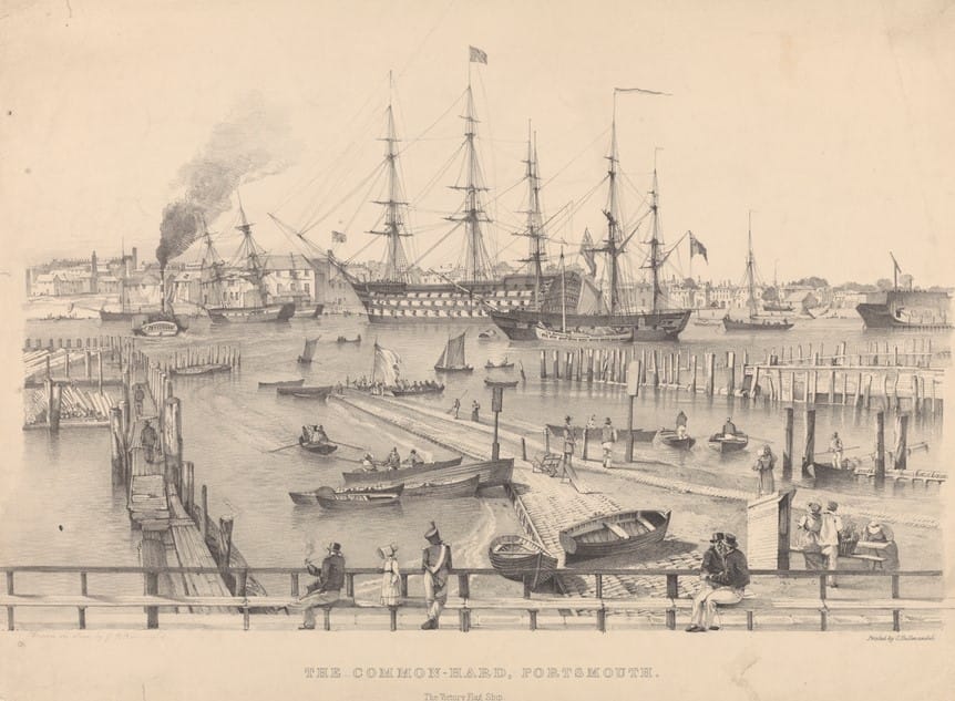 The Common Hard, 1834, with The Victory in harbour. Portsea Island was called “The Common” until 1792. The area was full of crime, and there was much disease as well, especially cholera. Portsea’s economy was dependent on the British Navy, and went through boom and bust cycles, depending on whether it was wartime or not. Especially war with France. Regardless of John George and Sarah’s decision to move to Portsea near the end of their lives, they were probably (marginally) better off for living in Kentish Town all of those years.