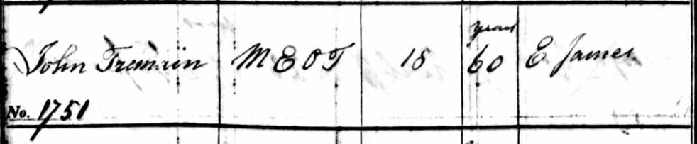 John George Tremain, baptism,2 June, 1805, St.Mary’s Church, Portsea. John George Tremain was baptised on 2 June 1805, at Saint Mary’s Church, Portsea, Hampshire, and his parents were John Tremain (1775-1836) and Jane (Jenny) Gillard (1785-1863).