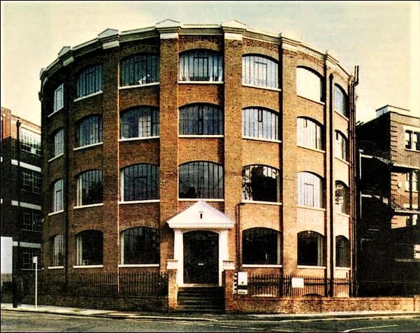 The most magnificent piano warehouse is to be seen at 12 Oval Road. It is the circular building constructed for Collard & Collard in 1852. This building replaced a similarly shaped one, which was destroyed by fire a year after it was built.