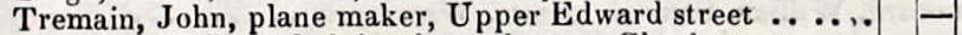 John Tremain, “Planemaker,” Upper Edward St., Brighton, 1842 Electoral Register. For the years 1840, 1841, and 1842, John Tremain was listed on Upper Edward Street in Brighton in the Electoral Register.