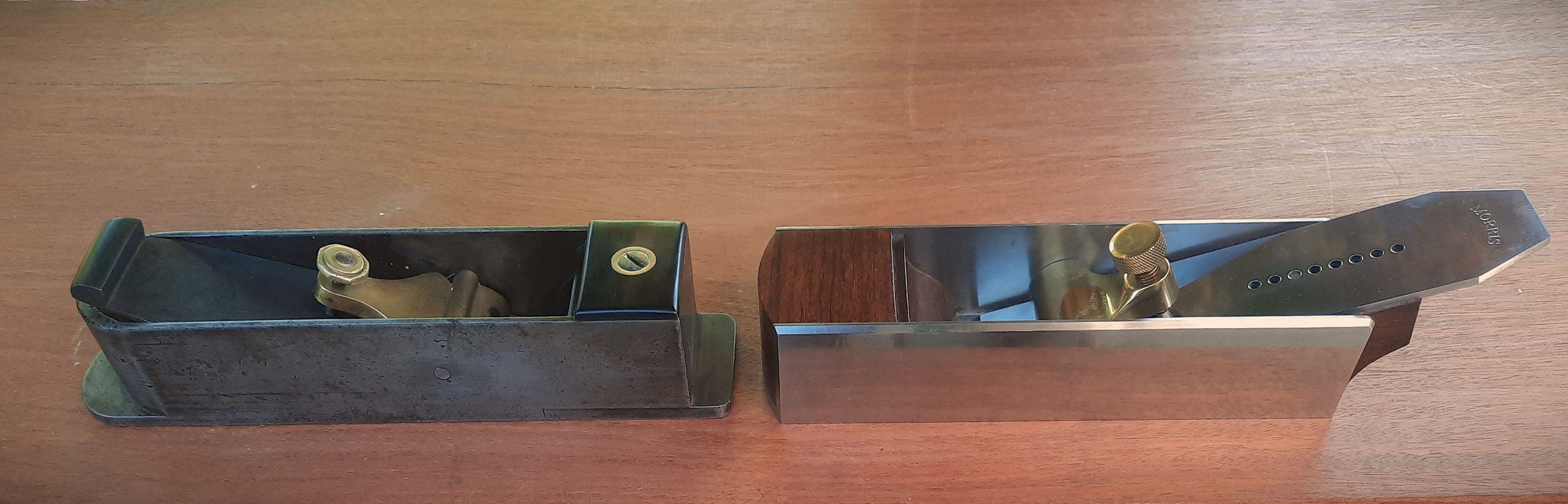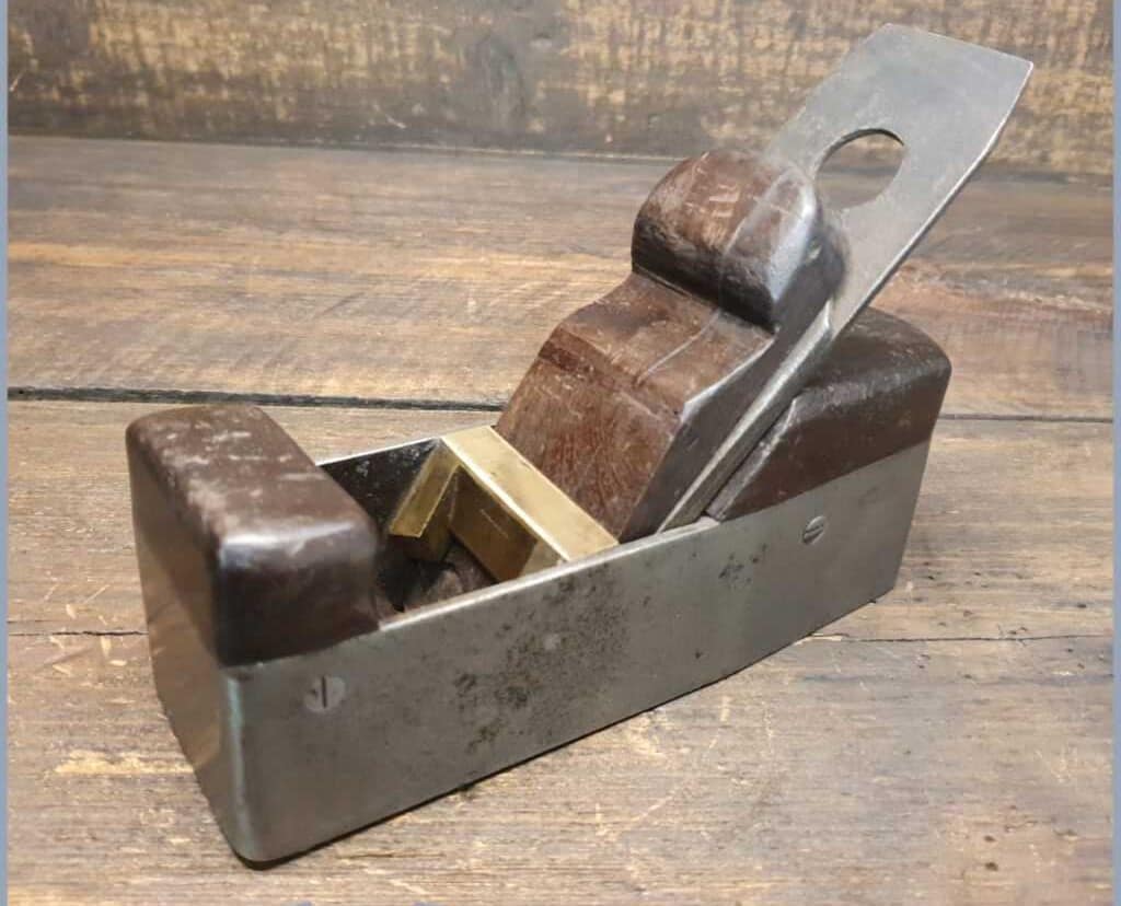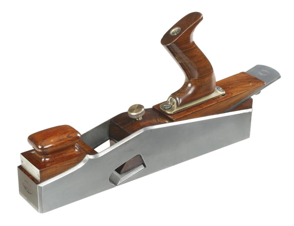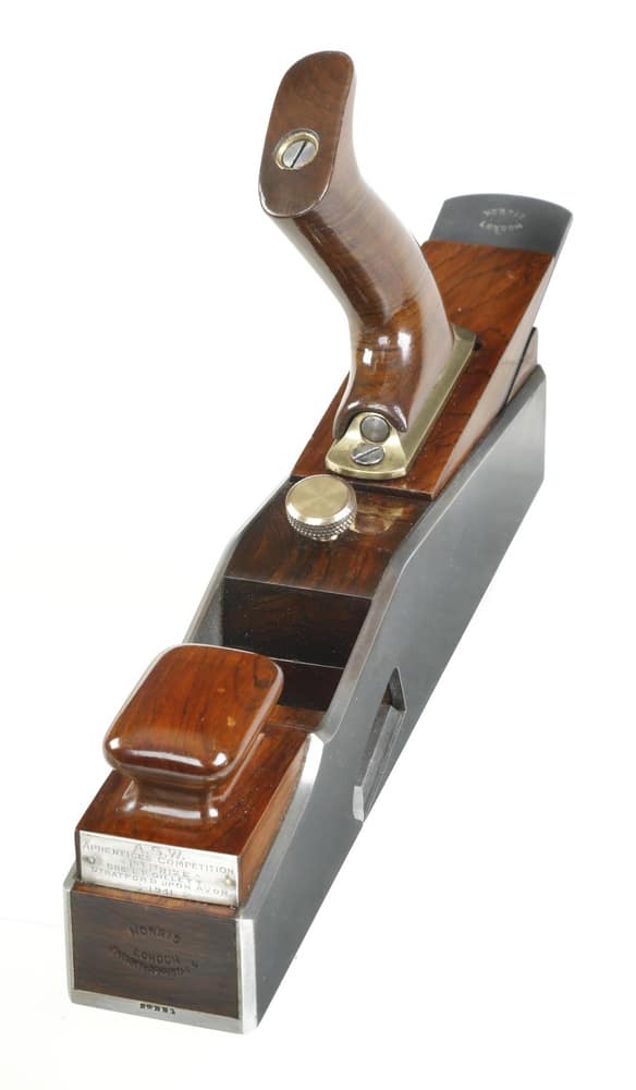 A special order Norris Mitre Rebate plane, with two known examples. One served as first prize in The Amalgamated Society of Woodworkers contest of 1941. It has a handle that can swivel as well as pivot, and it also has a captive wedge, and a Norris adjuster.