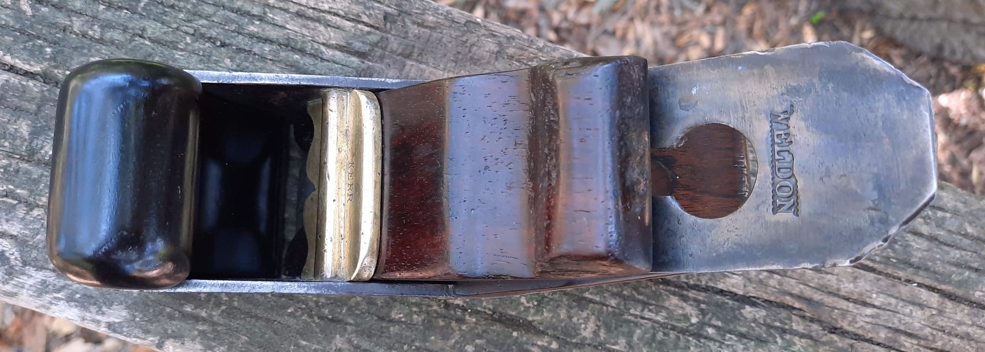 Cox adjustable mouth mitre plane, to view. The peined part of the lever cap screw has a delicate copper wash.