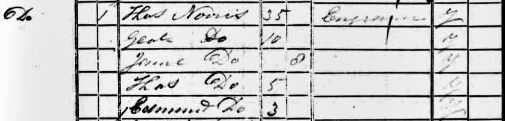 Thomas Norris Sr. on George St., Lambeth, in the 1841 U.K. census. Thomas James I was a music engraver on George St. in Lambeth.