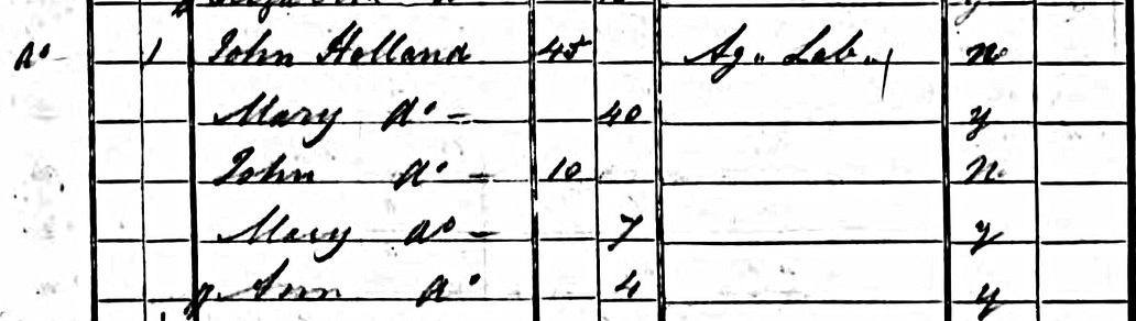 In 1841, 10 year old John Holland lived with his family in Bramley, in the norther section of Leeds. John Holland Sr. was an agricultural laborer, and may have needed to relocate as necessary in order to be present where work was available.