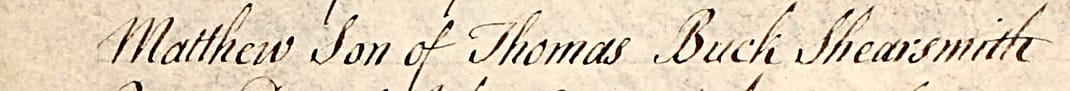 Matthew Buck was Baptized 8 November, 1776, at the Cathedral of Saint Peter and Paul, in Sheffield, York, England, and his parents were Thomas Buck, a “Shearsmith” (1748-1785) and Ruth Ashton (1746-1780). In Sheffield, Matthew Buck learned the metalwork necessary to make saws and files; since Matthew’s father Thomas died when he was only 9, he would have apprenticed with one of the many other Edgetool makers in Sheffield.