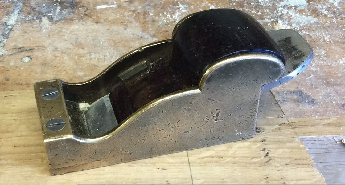 Sole of J. Buck mitre plane, showing tight mouth. Dovetails were placed on either side of the mouth, instead of the usual tongue and groove joint. After almost 200 years, this has not posed a problem.