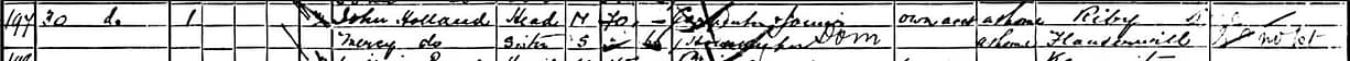 John and sister Mercy Holland, 30 Garden Row, in the 1901 U.K. census. During the 1901 census, John Holland, 70, declared his job as a “Carpenter and Joiner,” and was living