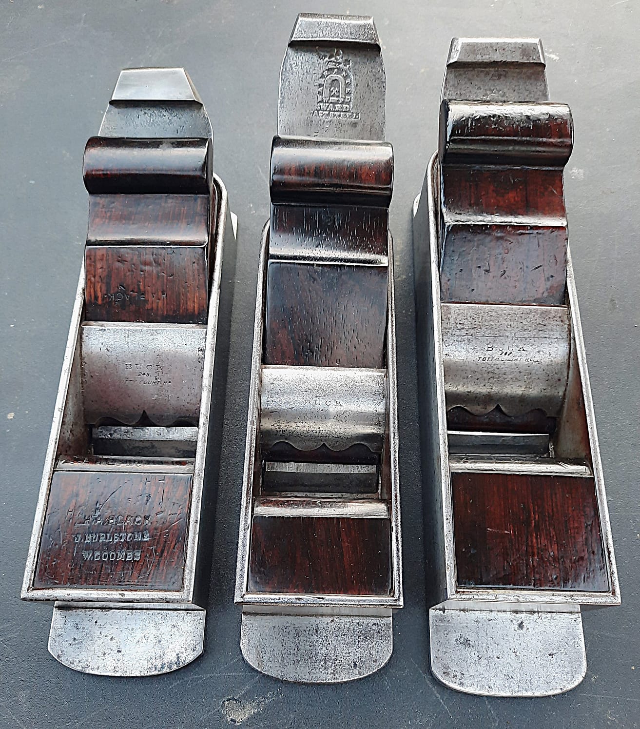 Buck sold rebadged Spiers planes, and four examples can be seen below. They do not appear to be different from Spiers signed planes in any way. This is to be expected, as it would be unlikely for a plane maker to sell their planes at a lower price, wholesale to the trade, with any special new designs or modifications unless required by the dealer.