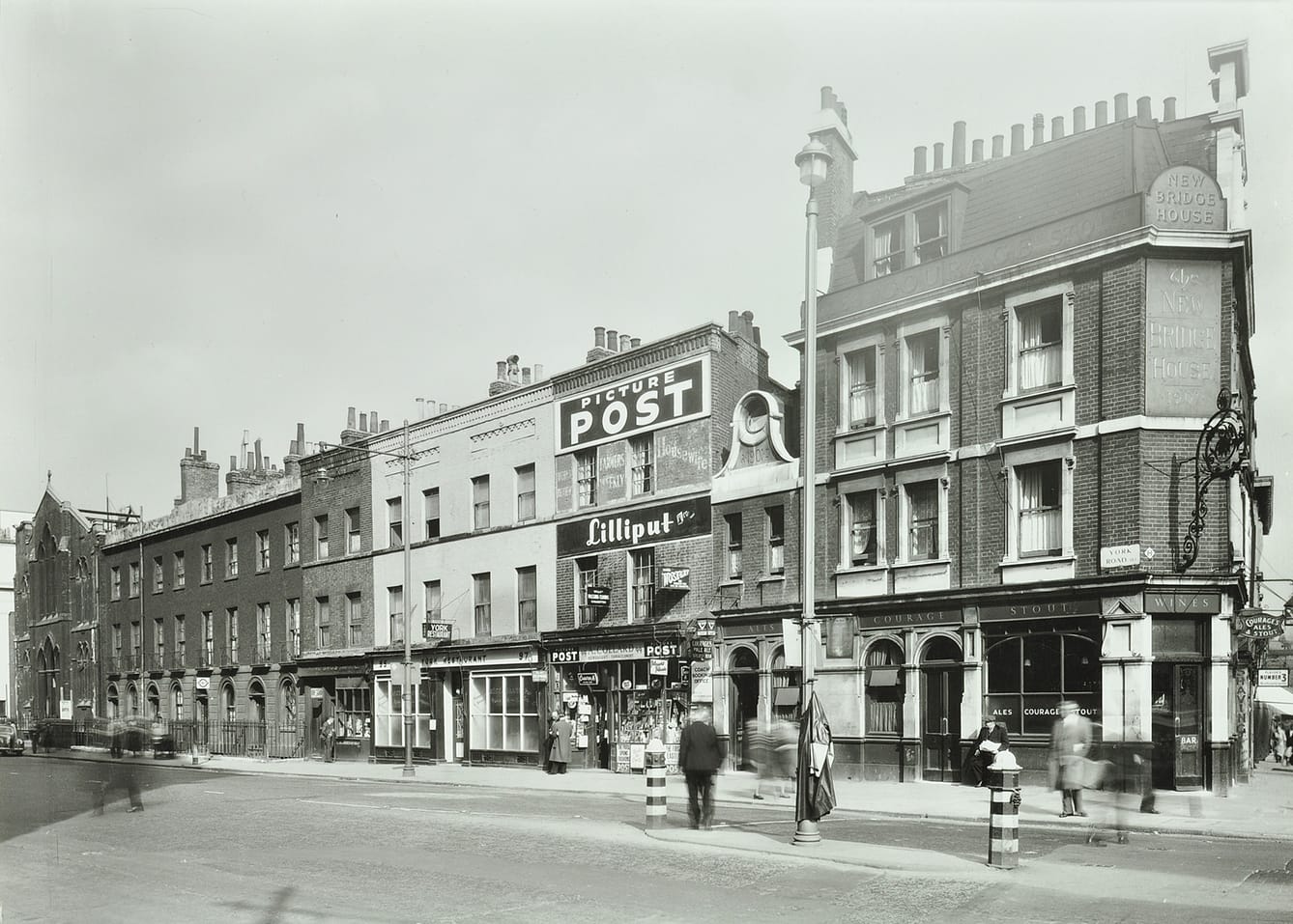 York Road, Southeast side, c. 1950, showing 93 York Road, John Holland’s address, 1871-1890, just to the left of the York Restaurant (King Brothers storefront).