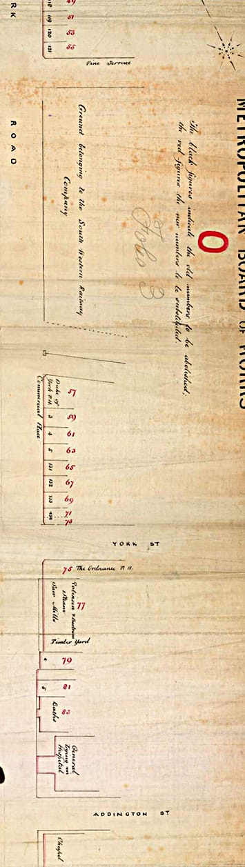 The 1862 York St. renumbering and the sequence of address listings in the 1870 London Directory correspond, and there also is a mid-20th century account of the renumbering for York Street numbers as given in “Survey of London: Volume 23, Lambeth: South Bank and Vauxhall”, ed. Howard Roberts, Walter H Godfrey ( London, 1951).