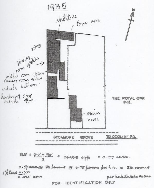 Thomas Jr. was on the move and relocated to a home at 3 Sycamore Grove, New Malden on 23 September 1906. Soon after, work began on building a fairly large new workshop/factory on the land next his Victorian house. Money was available for construction, but not for a headstone at Thomas Sr.’s grave. 3 Sycamore Grove is on the right, with just a corner of the house exposed. Thank you George Anderson for these wonderful images! The Norris property had a 120 foot frontage, with a 200 foot depth, and the shop was built circa 1907-1906. Soon after, work began on building a fairly large new workshop/factory on the land next his Victorian house. Money was available for construction, but not for a headstone at Thomas Sr.’s grave.