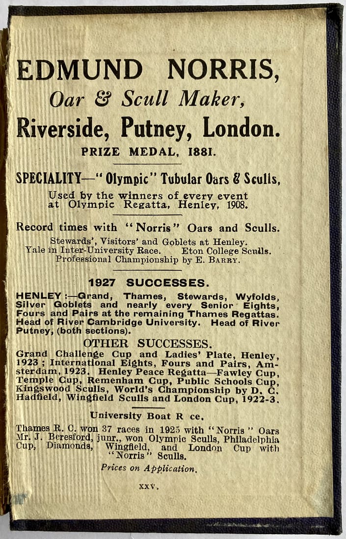 Edmund Norris advertisement, c. 1928 Edmund Norris was a small boat maker: masts, sails, oars, and sculls.