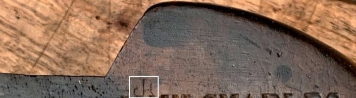 Many of Holland’s other planes did not have numbers, for example, his mitre planes lacked them; with so few marked Holland mitres, they were probably considered unnecessary. Also, Holland left many of his planes unmarked, in order to be bought in by tool retailers and stamped with their own proprietary inscription. These planes would have been without numbers as well. Sometimes the initials “J.H.” would be stamped in a less prominent location, such as on the bed, or on the iron.