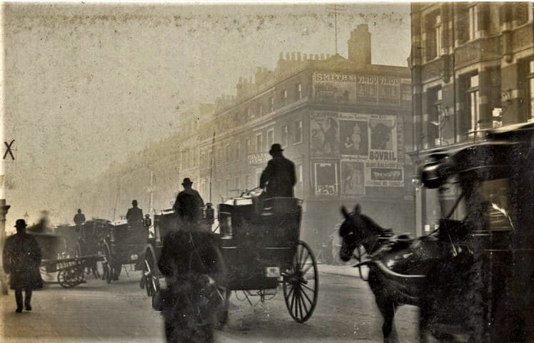 York Road scene, circa 1890s. York Road was a busy thoroughfare, which ran between Waterloo Road and Westminster Bridge Road, with the large South Western Railway Station positioned in between these two intersections. 93 York Road was a good, high visibility workshop location for Charles Badger (1868-1869), and John Holland (1870-1890). Thomas Norris Jr. and Sr. rented 23 York Road from <1898-1920.
