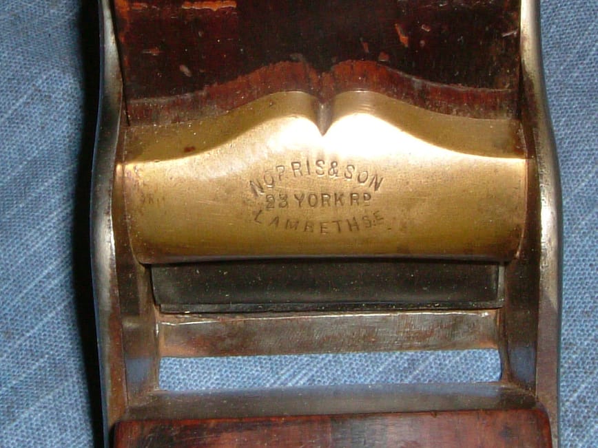 A definitive Norris no. 10 mitre plane with a curved gunmetal bridge with cupid’s bow in back is shown rebadged as a Buck at the bottom of this page. There are no differences between the Buck and a Norris no. 10 other than the stamp on the bridge.