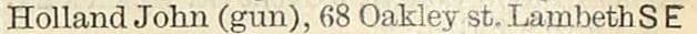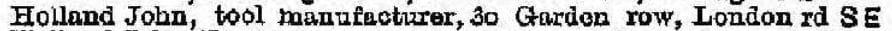 John Holland, “Tool Manufacturer,” in the 1895 London Post Office Directory. John Holland moved to 30 Garden Row sometime before the fall of 1894, and stayed there until at least 1907.