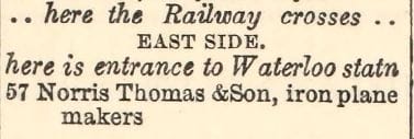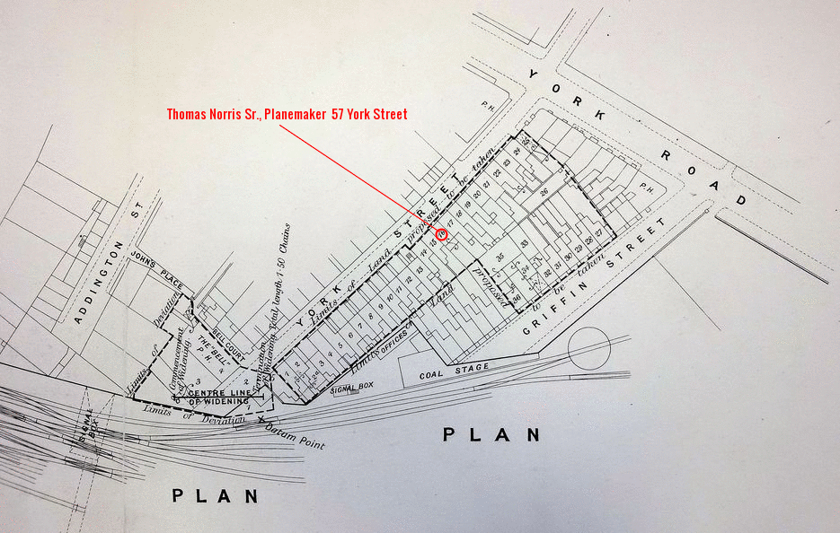 An improvement in means was the reason behind the Norris family leaving 57 York Street, rather than pressure from the railroad. Norris’ sales of fine metal planes were finally paying dividends. Norris employee Charles Henry Payne explained the move. Regarding 57 York Street, Payne revealed that “The Norris family lived in rooms above the works, and another family lived above that. As the family became better off they moved home to Quarry Road Wandsworth, but retained the works in York Street.”