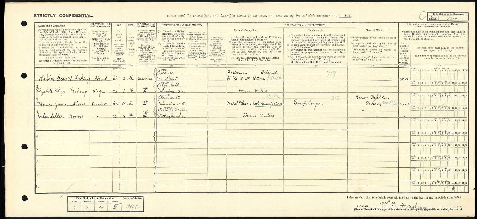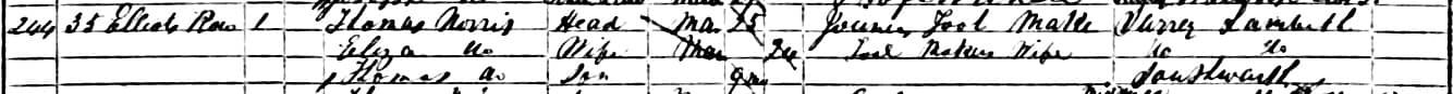 Thomas J.Norris Sr. and Jr., and family, in the 1901 U.K. Census. 6 Quarry Road, Wandsworth, Surrey.