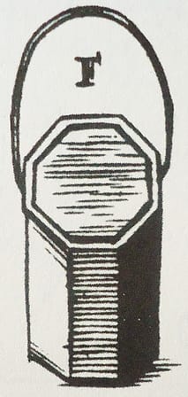 “The Carpenter’s Glue Pot. (Fig. 219) an original, homemade example of which, constructed of lead for extra heat retention, as described by Moxon, is here shown. No. 20251. Still earlier than Moxon, in the “Probate Records of Essex County, Massachusetts, 1635-1681, 3 vols., George Francis Dow, editor. Salem Mass. The Essex Institute, 1916-1920, the carpenter’s glue pot is appraised at 1 shilling, in 1644, and at 1 shilling, 6 pence, in 1675. In these cases it seems unlikely that the glue pot could have been made thus cheaply of expensive lead, neither could it have been double-bottomed, as described in “The Circle of Mechanical Arts,”, by Martin, who, writing in 1813, says that the double-bottomed glue pot had just then come into use in England. The illustration also shows one such pot, factory-made, in three compartments, of cast iron, enclosing an inner receptacle of heat retaining alloy, of date about 1870, resembling in construction those now in use [1925-1929], in which the glue, in this inner kettle, escapes scorching by being heated by water boiled in the outer compartments.”