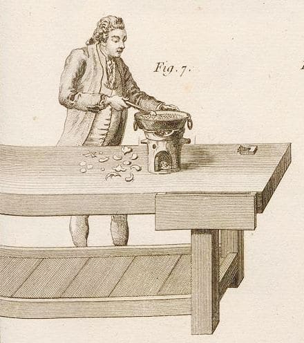 John Fuller apprenticed in a coppersmithing shop, at the the age of nine, in 1842 in the town of Dorking, Surrey, England. He described how coppersmiths made their wares, at a time–up to around 1884 he explained later–of utilizing traditional methods with hand-made forms and mountings.
