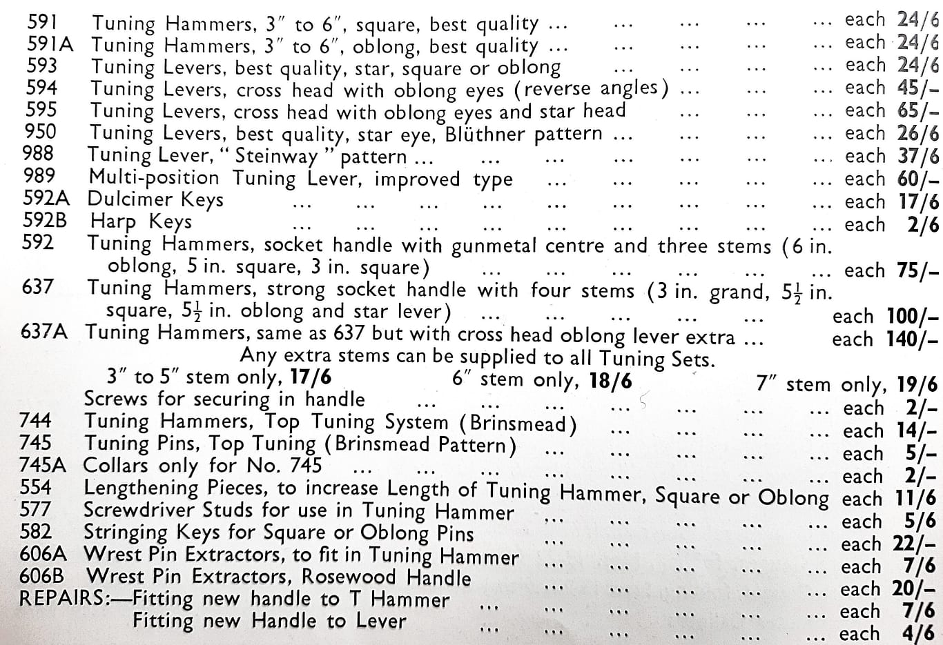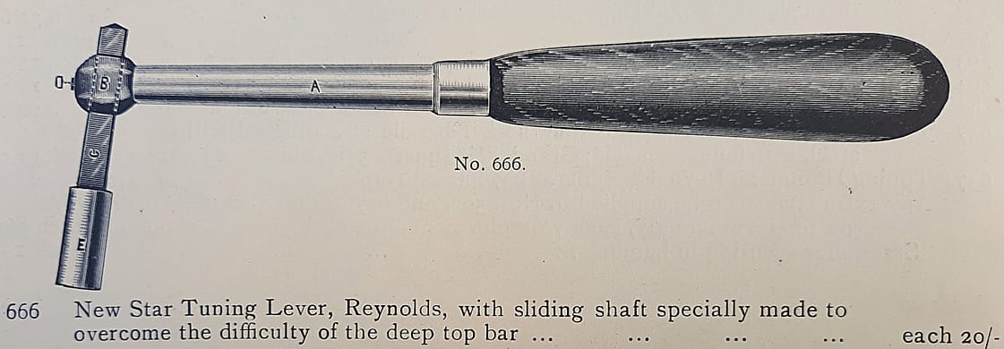 R. Reynolds Universal tuning hammer. No 637 in the 1920 Goddard catalogue. Clean lines and high price.