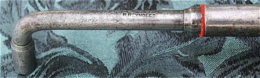 R. Reynolds all steel tuning hammer with red cloth washer. Reynolds tuning lever with square socket, not pictured in Goddard catalogues. All steel, with hollow ground screwdriver inside the handle. Reynolds products shown in these photos strike me as no-nonsense and utilitarian — but very well made