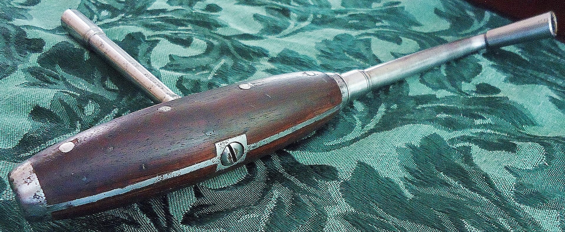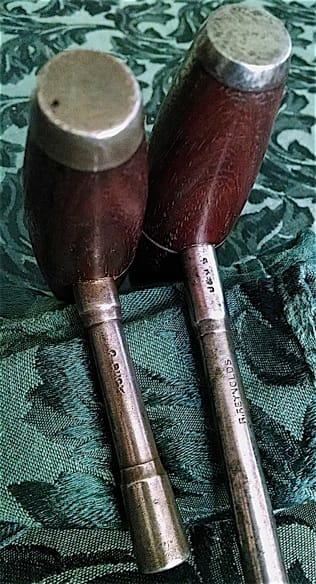 J.& J. Goddard tuning lever with walnut handle, made by Reynolds, bottom; R. Reynolds heavy duty lever with Cuban mahogany handle, top.
