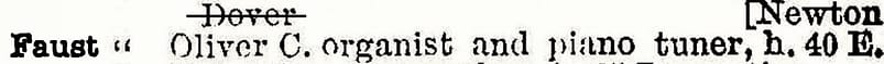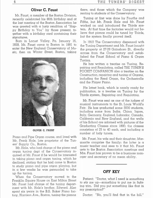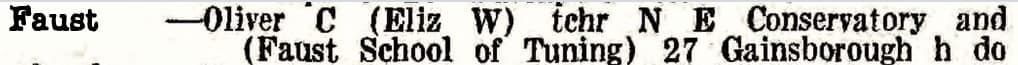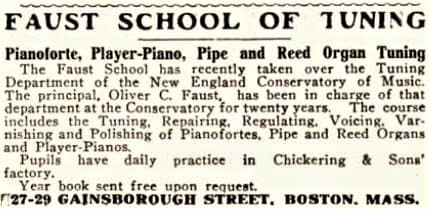 Oliver C. Faust “Teacher at New England Conservatory, and Faust School of Piano Tuning. 1937 Boston City Directory.